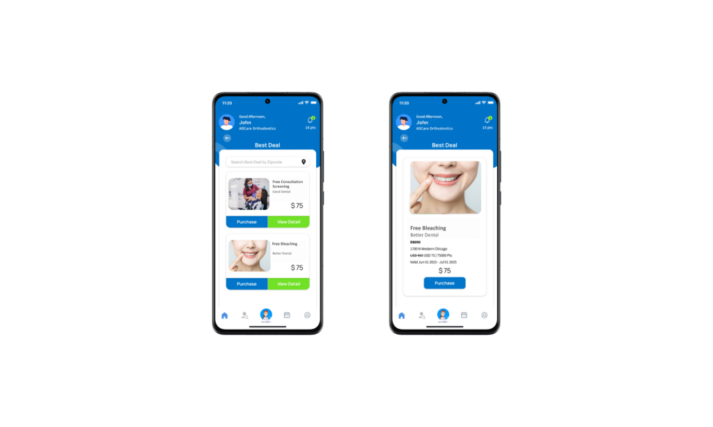 The Best Deal section displays promotional offers from clinics, such as discounts, free treatments, and other special deals that you can redeem directly at the participating clinics.